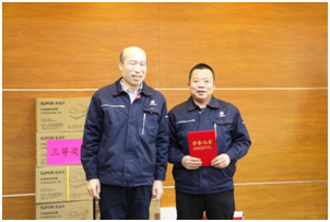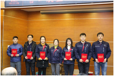 公司領(lǐng)導班子成員為獲獎員工頒發(fā)了榮譽證書。