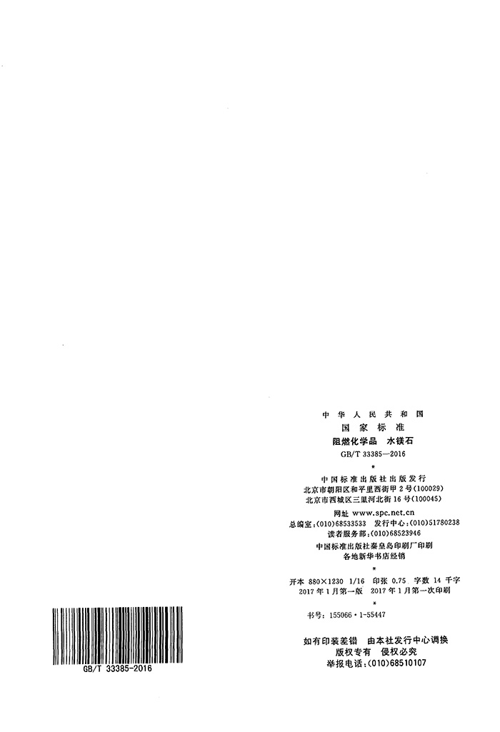 我司參與起草的GB/T33385-2016《阻燃化學品水鎂石》標準 于2017年4月頒布實施